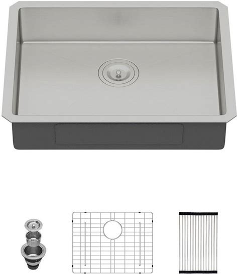 30 in. Undermount ADA Single Bowl 16-Gauge Brushed Nickel Stainless Steel Kitchen Sink With Bottom Grids