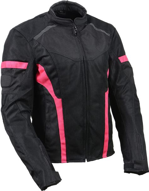 Milwaukee Leather MPL2794 Black And Pink Mesh/Textile Armored Motorcycle Racer Jacket For Women - All Season Jackets