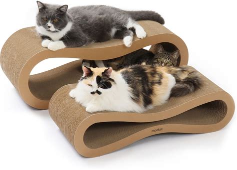 Modkat® Premium 2 Cat Scratcher Set. Large (30L X 10.6H In.) And Small (26.6L X 7H In.) Sizes. Scratch, Play Lounge. High-Grade Cardboard, 100%
