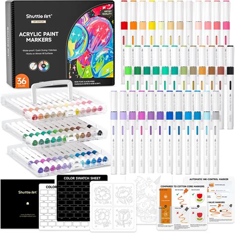 Shuttle Art Acrylic Paint, 36 Colors Acrylic Paint Set With Brushes & Palette, 2Oz/60Ml Bottles, Rich Pigments Non-Toxic For Artists Kids & Adults,