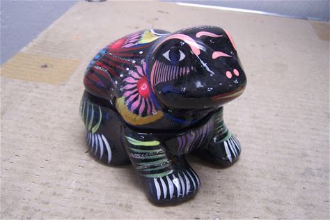 Frog Box - Clay Hand Painted Jewelry Box Alejero, Black - Mexico