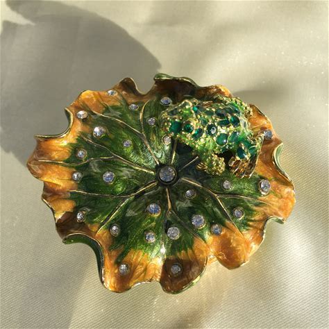 Frog Trinket Box, Animal Jewelry Box, Frog Figurine, Enameled Metal Box With Swarovski Crystals