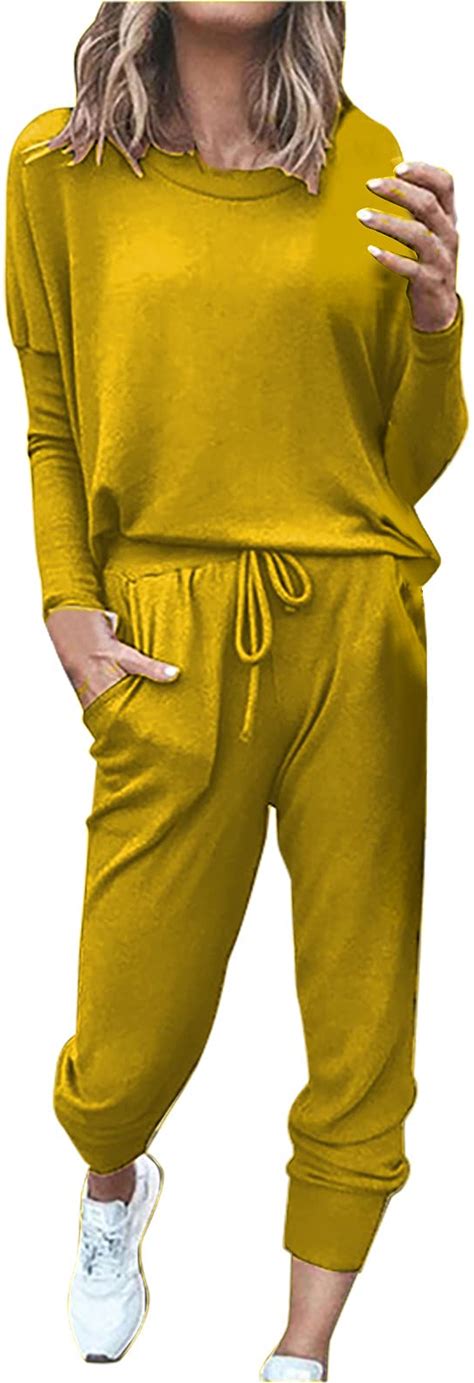 Womens Sweatsuits 2 Piece Set Airport Outfits For Women Crewneck Long Sleeve Sweatshirts Drawstring Pants Tracksuits