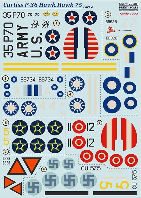 Curtiss P-36 Hawk. Hawk 75 Part-2 Decals 1:72 PS 72-381 For Aircraft Model Kit
