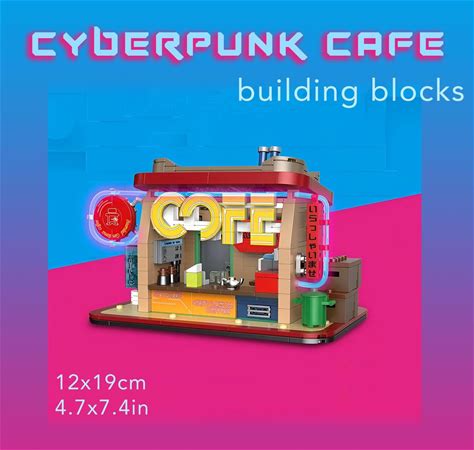 Cyberpunk Cafe Building Kit - Neon Mini Street Stall - Sci-Fi Brick Set - Gift For Adults & Children