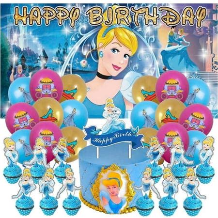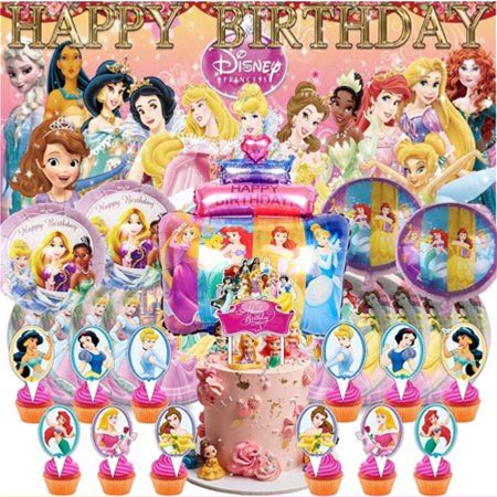 Princess Party Supplies Birthday Decorations Plates Banner Kids Cake Toppers Set Decor