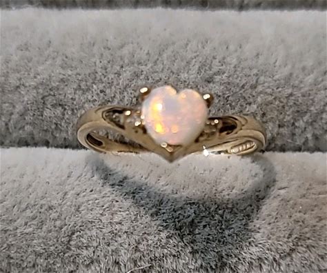 Vintage EMA 10K Yellow Gold Opal Diamond Ring Size 7 Heart Shaped