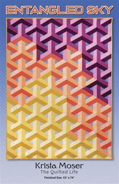Entangled Sky Krista Moser Patterns, Escher Quilt Pattern, Modern Quilt Pattern, Uses Large 60 Degree Diamond Ruler, Printed, Free Ship USA
