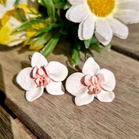 Sleeper Earrings Costume Jewelry Design Original Gift Woman Girl Valentines Day Orchid Flower Spring Polymer Clay Fimo