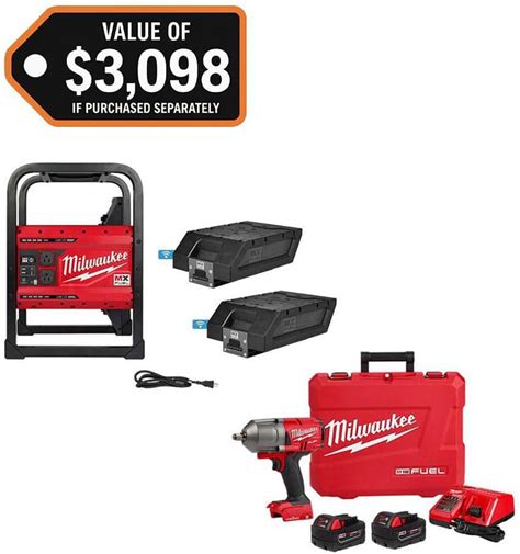 MX FUEL 3600-Watt/1800-Watt Battery Powered Push Start Generator And M18 FUEL 1/2 in. High-Torque Impact Wrench Kit