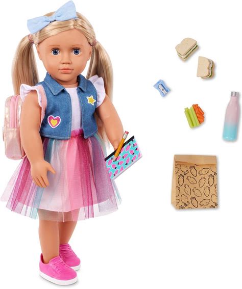 Our Generation Evie 18" School Doll In Rainbow Skirt With Backpack & Accessories Set