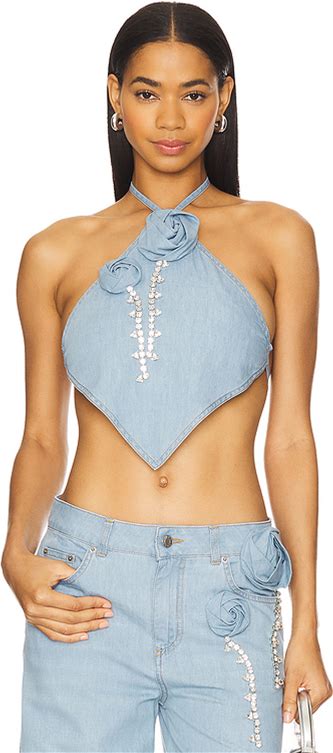 AREA Crystal Rosette Handkerchief Top In Blue - Size L
