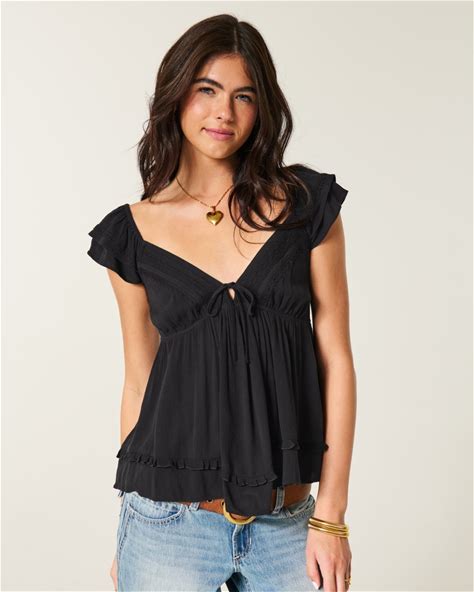 Women's Easy Handkerchief Hem Babydoll Top In Black Size L From Hollister
