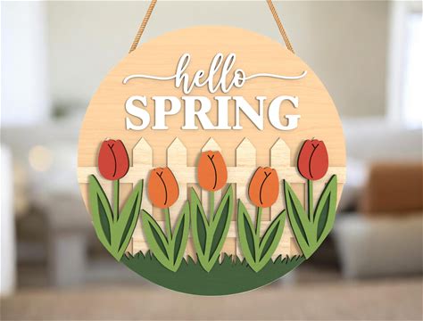 Hello Spring Laser Cut SVG File - Spring Tulips Laser Cut File - Easter Tag File - Svg, Dxf, Ai, Png