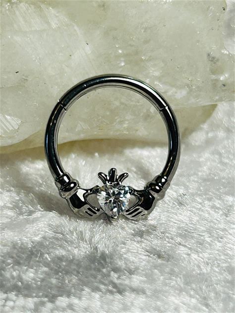 Claddagh Titanium Hinged Ring: Clear CZ Heart Septum Piercing (1.2mm X 8Mm)