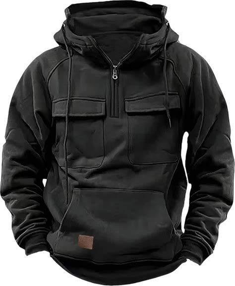 Men's Outdoor Thick Hooded Sweatshirt With Multiple Pockets