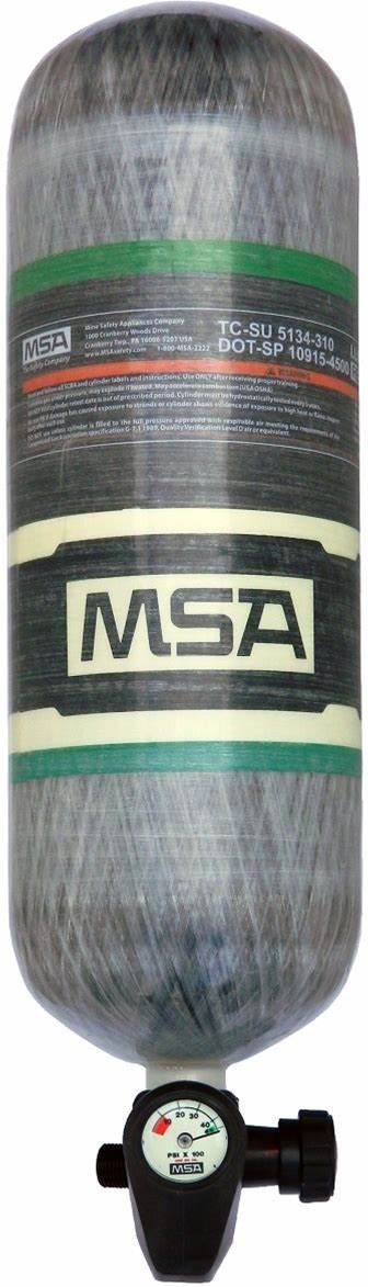 MSA SCBA Cylinder: Carbon Fiber, 9.8 Lb Wt Empty, Pre-Filled, 4,500 Psi Cylinder Pressure Model: 807570-SP