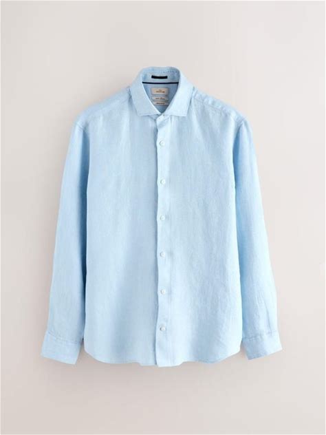 Next Regular Fit Signature 100% Delave Linen Long Sleeve Shirt - Blue - Casual Shirts Size XL