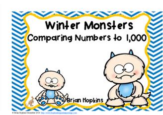 Comparing Numbers To 1,000 Task Cards With Winter Monsters Theme For Math