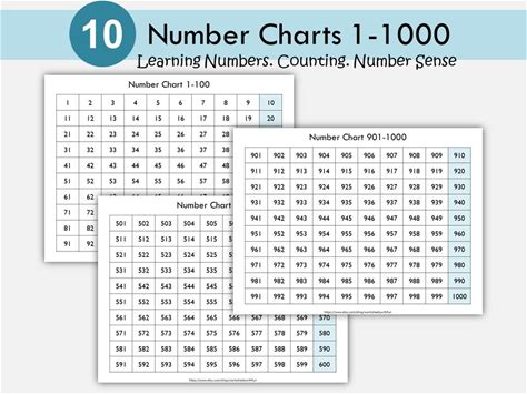 Number Charts 1-1000 Printable: Math Worksheets For Preschool-1St Grade (PDF Download)