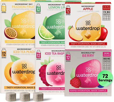 Waterdrop Hydration Cubes With Vitamin C, B Vitamins And Electrolytes, 6 Flavor Electrolyte Variety Pack, Flavored Water Enhancer Cubes For Still &
