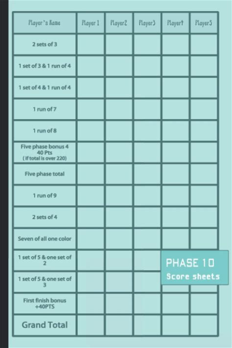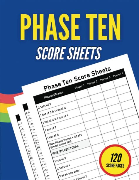 Phase Ten Score Sheets: 120 Score Pages For Scorekeeping Phase 10 Score Cards With Size 8.5 X 11 Inches Phase Ten Dice Game (The Phase Ten Score Books