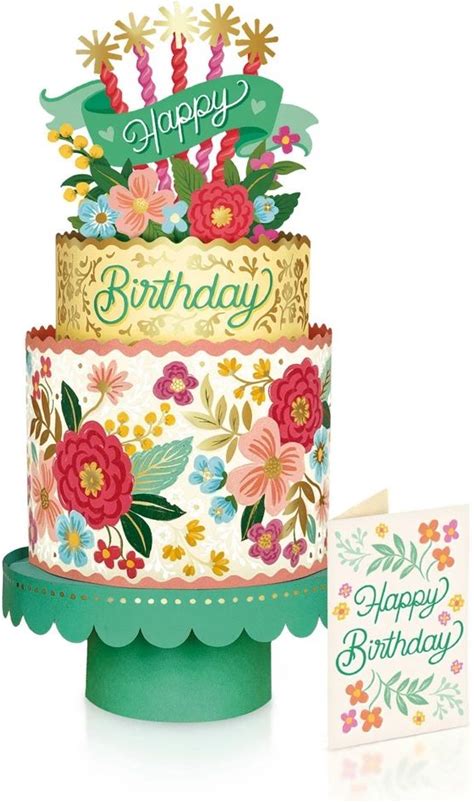 Freshcut Paper 12" Blooming Birthday Cake 3D Pop Up Greeting Card And Envelope