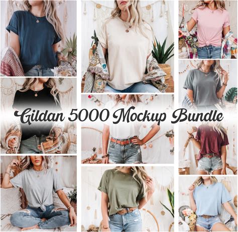 Gildan 5000 Mockup Bundle, Gildan Tee Shirt Mockup Bundle Print On Demand, Apparel Mockup Bundle, Gildan Mockup Bundle Instant Download