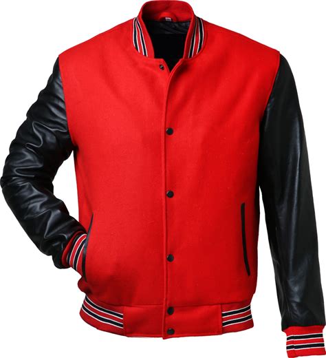 Red And Black Letterman Jacket Men - Mens Black Varsity Letterman High School Baseball Bomber Jacket