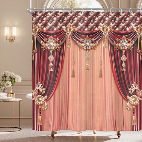 Riyidecor Burgundy Red Shower Curtain Modern European Style Luxury Bridal Shower Elegant Simple Retro Vintage 72Wx72h Inch Women Girl Fabric Decor