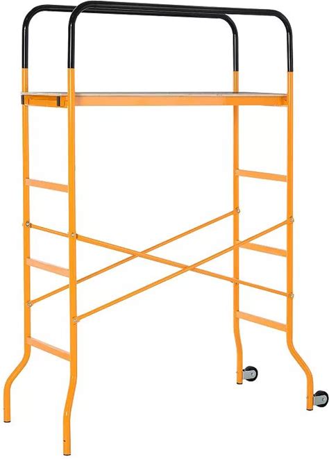 HOMCOM 4 Step Steel 3.8 X 2 X 6 ft. Scaffold 2 Wheels Free Moving For Indoor And Outdoor Decoration Anti Skid 440 Pound Capacity, Black And Yellow