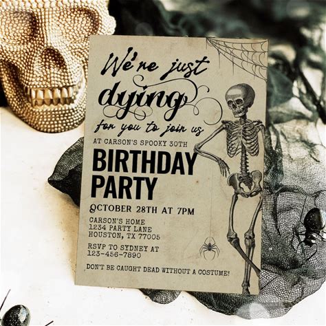 Vintage Gothic Skeleton Adult Halloween Birthday Invitation