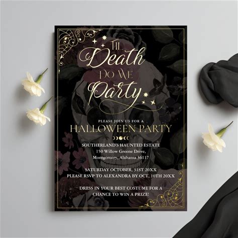 Til Death Do We Party Gothic Skull Halloween Foil Invitation