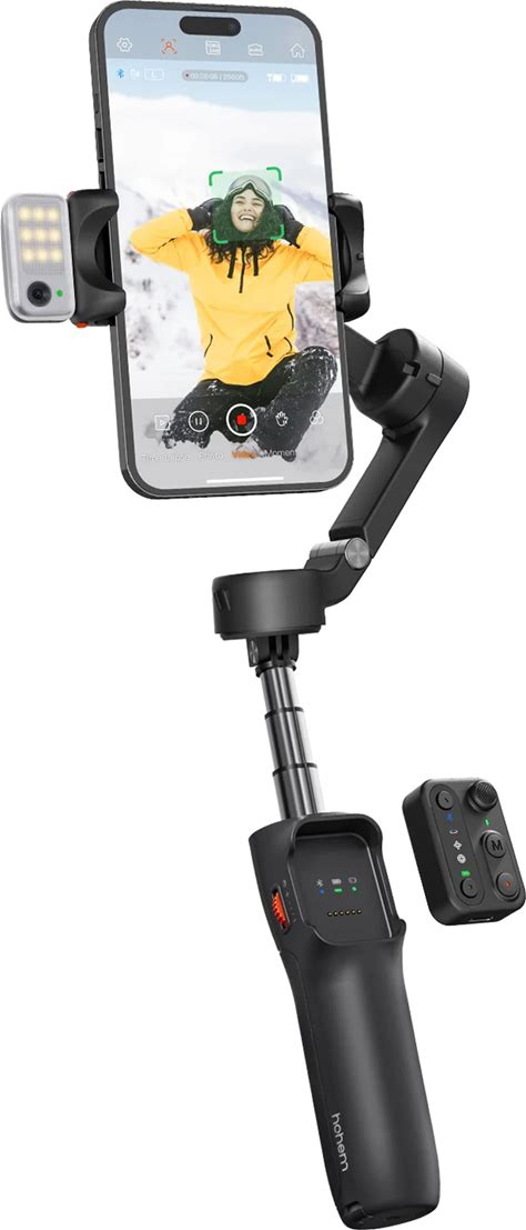 Hohem - Isteady V3 3-Axis Gimbal Stabilizer For Smartphone W/ AI Tracking, Detachable Remote, Extendable Pole, & Magnetic Light - Black