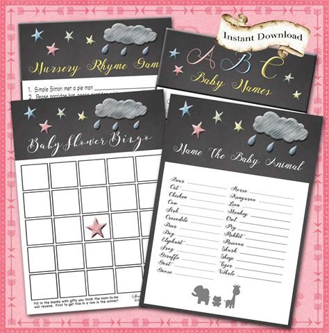 Twinkle Star Baby Shower Games: Bingo, Nursery Rhymes (DIY Print)