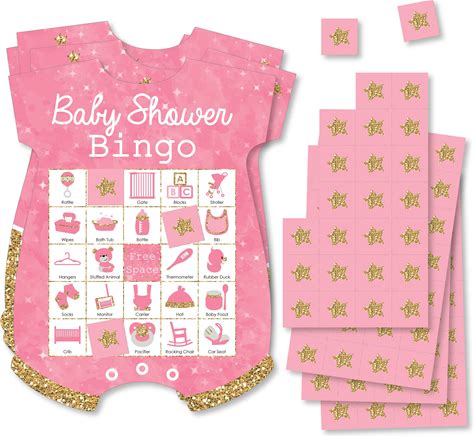 Big Dot Of Happiness Pink Twinkle Twinkle Little Star - Picture Bingo Cards And Markers - Baby Shower Shaped Bingo Game - Set Of 18