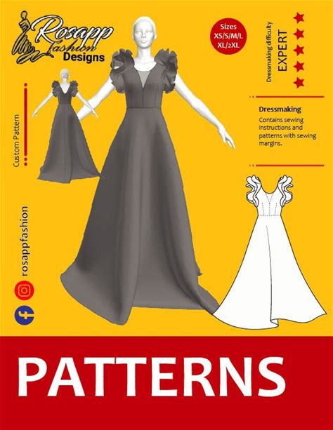 Umbrella Sewing Pattern For Women Dress/ Flounces Sleeve/Plunge Neckline/Size S-2XL/Instant Download/Easy Digital PDF Sewing Pattern