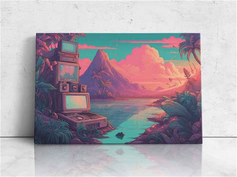 The Great Vaporwave | Large Stretched Canvas, Black Floating Frame Wall Art Print | Great Big Canvas