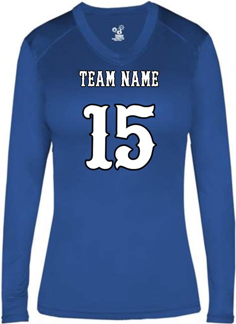 Badger Women S Ultimate Softlock Fitted Blue Volleyball Long Sleeve V-Neck Jersey