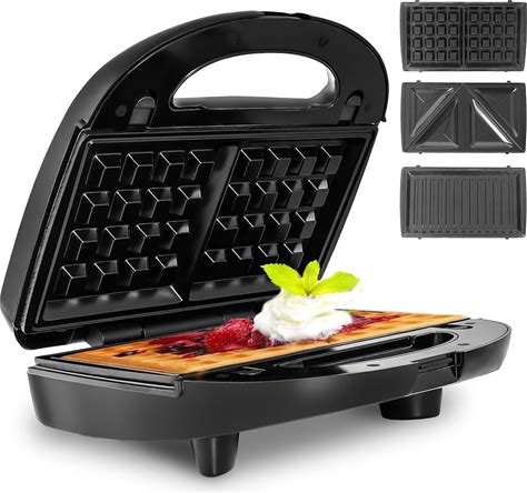 Waffle Makers, 3-In-1 Panini Press Sandwich Maker With Removable Plates, 5-Gears Temperature Control
