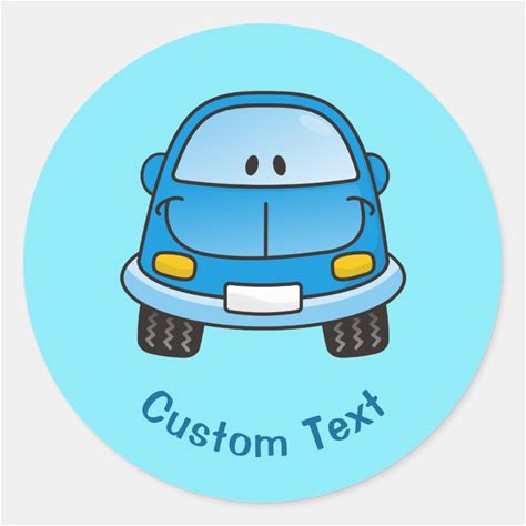 Blue Cartoon Car Classic Round Sticker