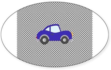 Blue Cartoon Car On Black Dots Sticker (Oval)