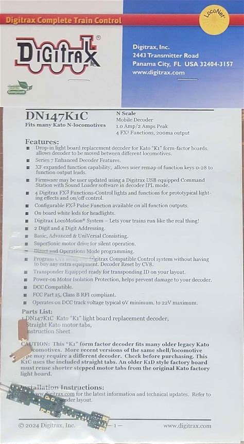 Digitrax DN147K1C N Scale 4 Function Board Replacement Decoder. Kato NIP. Digitrax. Digital Control Devices.