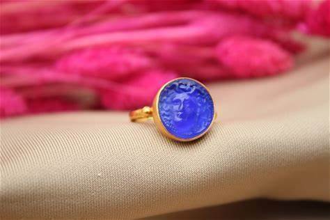 Intaglio Glass Silver Ring Intaglio Glass Ring Gold Over Fashion Ring Glass Ring Carving Ring Dainty Gift Intaglio Roman Silver Ring
