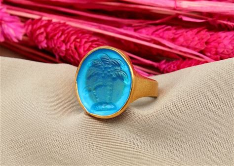 Palm Intaglio Glass Silver Ring | Intaglio Glass Ring Gold Over | Palm Carving Ring | Intaglio Carved Ring | Glass Carving Gift
