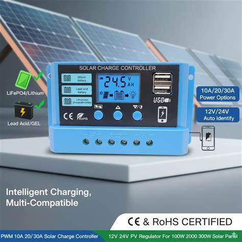 Thlevel 30A PWM Solar Charge Controller, 12V/24V Solar Panel Charger Controller With Adjustable LCD Display And Dual USB Port For Open, AGM, Gel, Lead-Acid Batteries