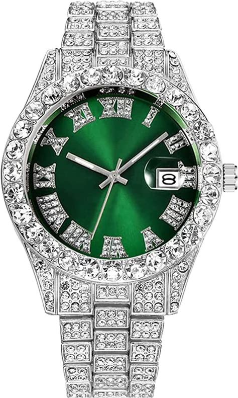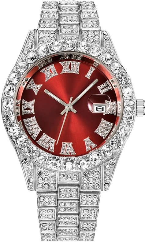 SENRUD Women's Men's Hip Hop Wrist Watch Unisex Crystal Rhinestone Watch Iced Out Watch