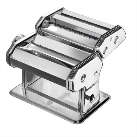 150 mm Silver Stainless Steel Manual Pasta Maker With 7 Thickness Settings And 3 Premium Attachments