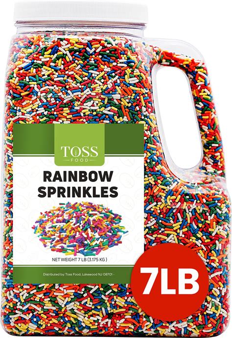TOSS Rainbow Sprinkles Jimmies, 7 Pounds, Cake Decorating Topping For Baking And Ice Cream, Resealable Container
