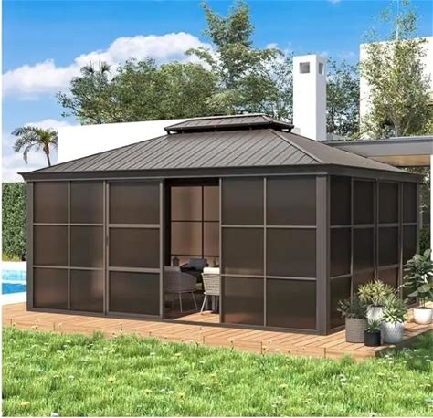 12' X 16' Sunroom, All-Season Solarium Gazebo With Sliding Doors & Lockable PC Screen Walls, Outdoor